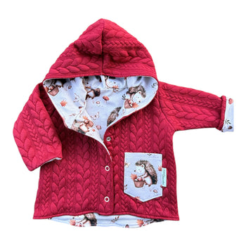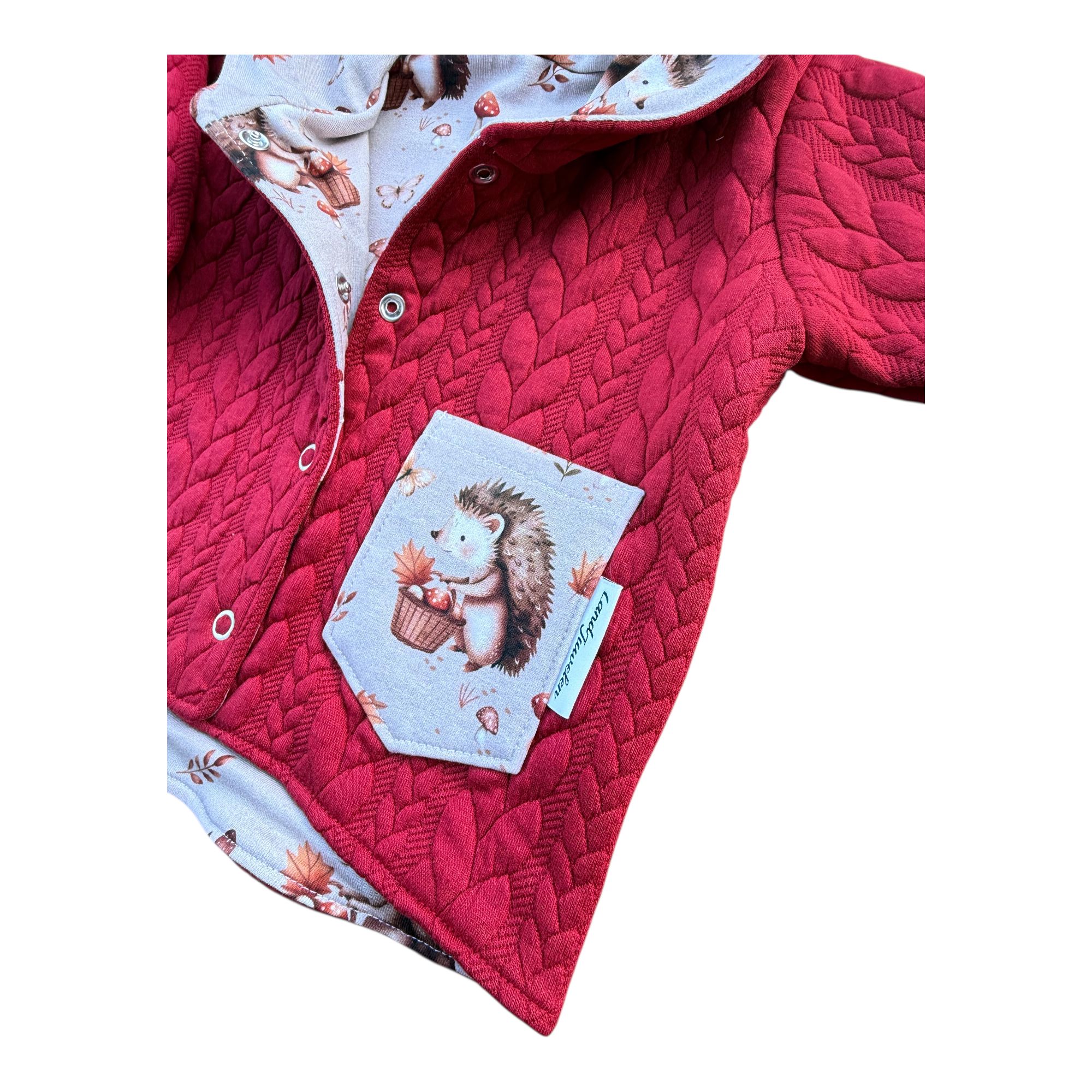 Dieser süße Baby-Overall vereint Wärme, Komfort und Stil in einem. Hergestellt aus weichem, hochwertigem Material mit Zopfmuster-Optik, sorgt er für ein gemütliches Tragegefühl an kühlen Tagen. Die Kapuze und das Innenfutter mit verspieltem Tier- und Bauernhofmotiv machen ihn nicht nur praktisch, sondern auch zu einem echten Hingucker.