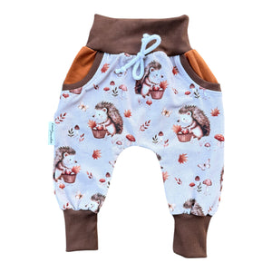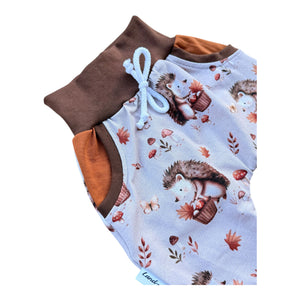 Diese liebevoll handgefertigte Pumphose vereint Komfort, Bewegungsfreiheit und ein niedliches Waldtier-Design. Der weiche Jersey-Stoff mit detailreichen Igelmotiven macht sie zu einem besonderen Lieblingsstück für Babys und Kleinkinder – ideal für Alltag, Spielen oder gemütliche Stunden zu Hause.